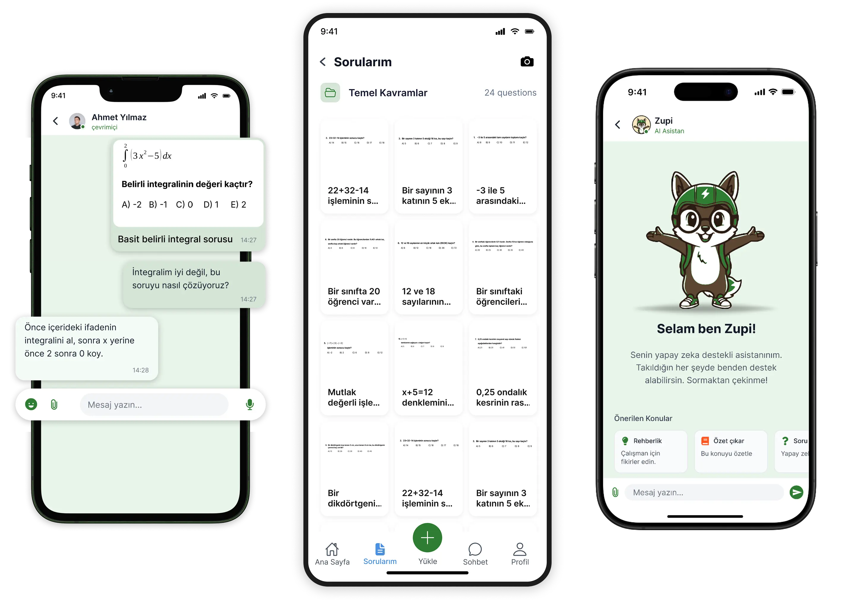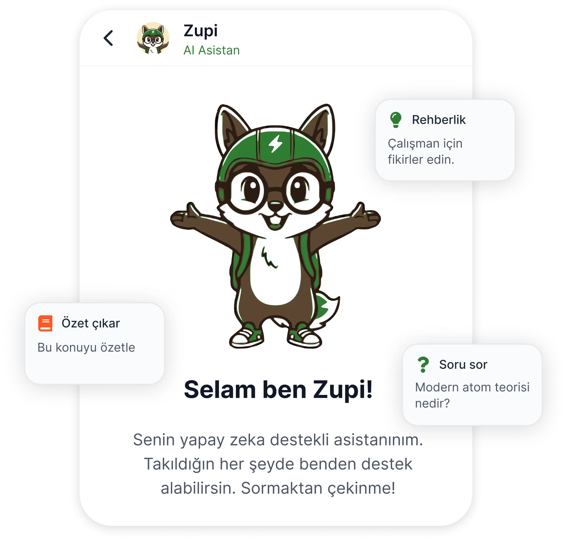Sorularını biriktir, arkadaşlarınla çöz, AI asistanın Zupi’yle asla cevapsız kalma. Kaydedersen unutulmaz, paylaşırsan çözülür.